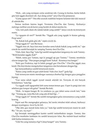 Menenangkan Jangan nangis Sayang nanti emak ayah dengar mereka mungkin belum tidur lagi tu Kebetulan kamar mertua hanya bersebelahan kamar tidur pengantin. Acha tunggu ya sayang Acha membalasMalamnya jam delapan aku sudah berada di depan pagar rumah Acha lebih tepat rumah. Sama Koh Chow Luan jawab mama.